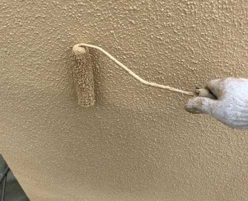 モルタル外壁の下塗り塗装(微弾性フィラー塗布)|東京都町田市のH様邸にて塗り替えリフォーム中